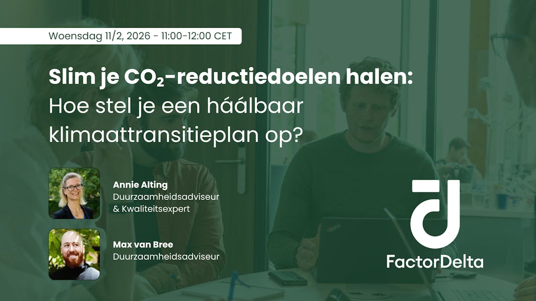 In dit webinar leer je hoe je tijdig operationeel haalbare Science-Based Targets opstelt die passen bij jouw bedrijf en toekomstplannen én hoe je ze succesvol indient bij het SBTi.