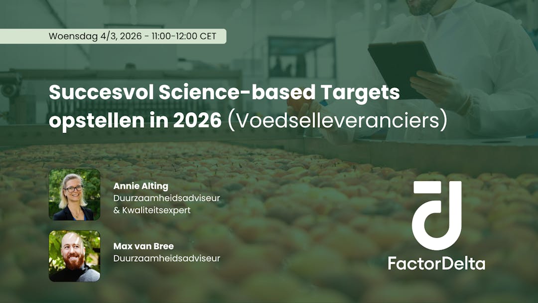 Moet jij als kwaliteit- of duurzaamheidsexpert aan de slag met SBTi of CO₂-reductie, maar weet je niet waar je moet beginnen? In dit webinar leer je hoe je in 2026 de eerste stappen zet naar een CO₂-reductieplan (ook wel klimaattransitieplan) met haalbare maatregelen en slimme investeringen - geborgd in je kwaliteitssysteem.